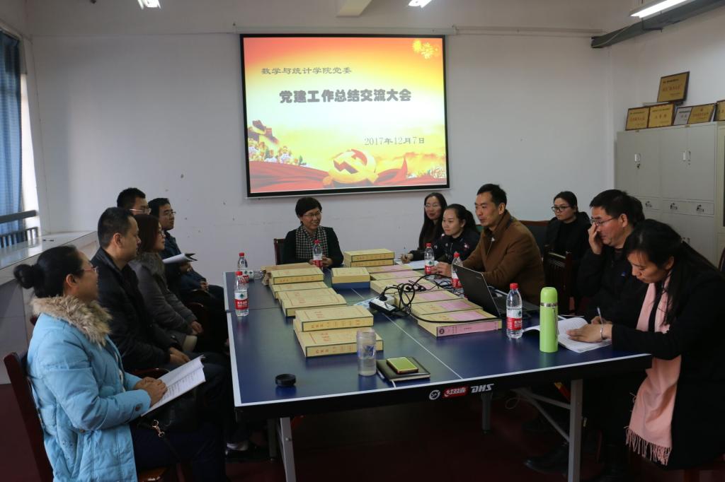 12月7日下午,数学与统计学院党委党建工作总结交流大会在学院党建活动室召开。会议深入学习贯彻党的十九大精神,总结交流学院党建工作经验,就进一步加强学院党建工作进行部署。会议由党委副书记高冲主持,学院党委委员、各支部委员参加会议。